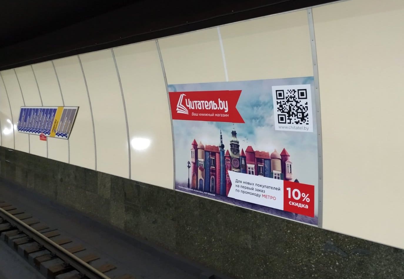 Постеры различных форматов размещаются на путевых стенах станций метрополитена.