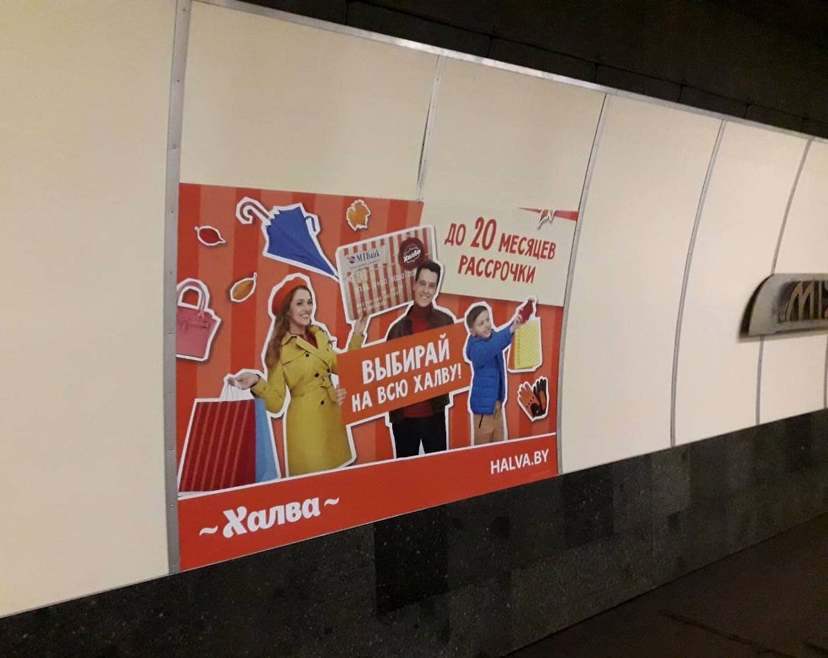 Постеры различных форматов размещаются на путевых стенах станций метрополитена.