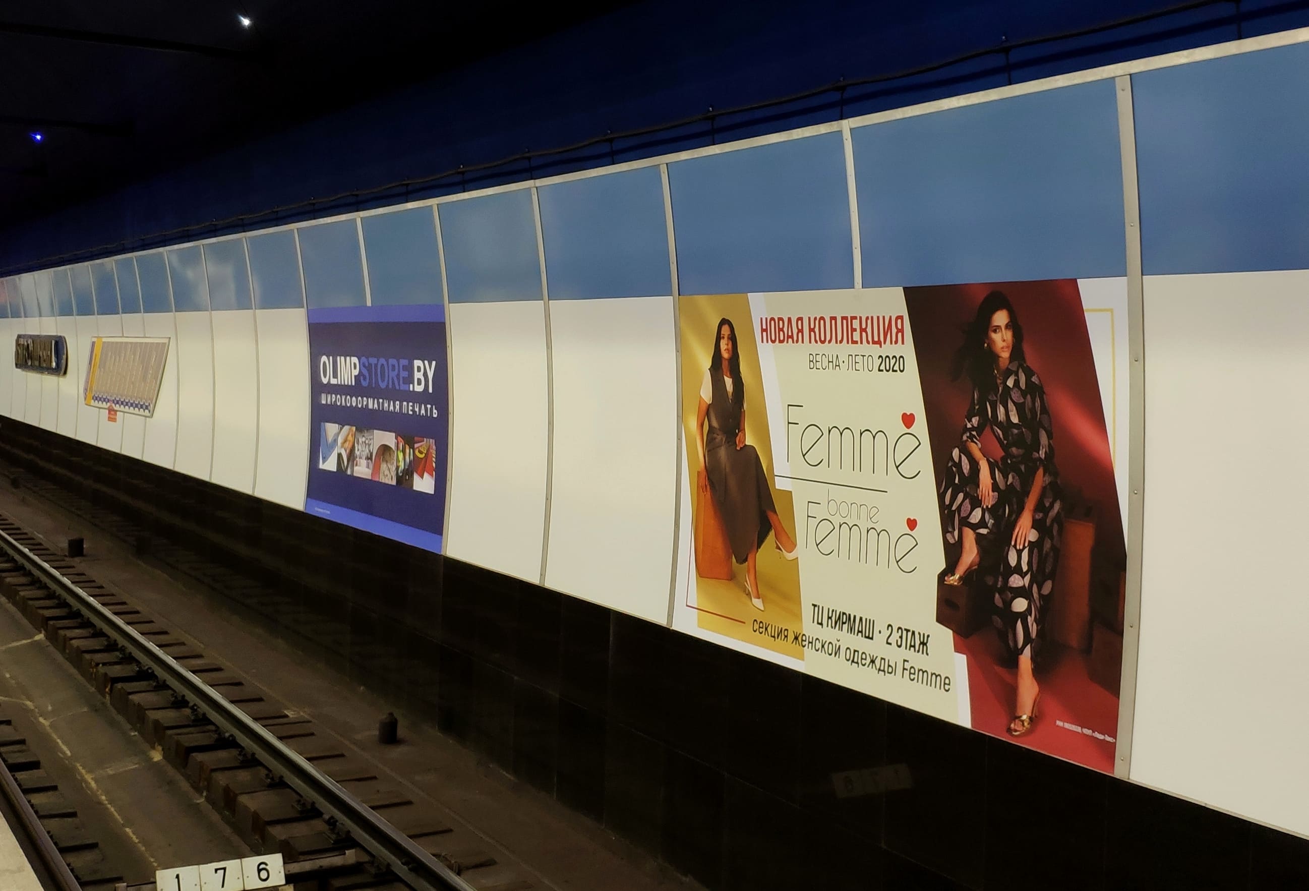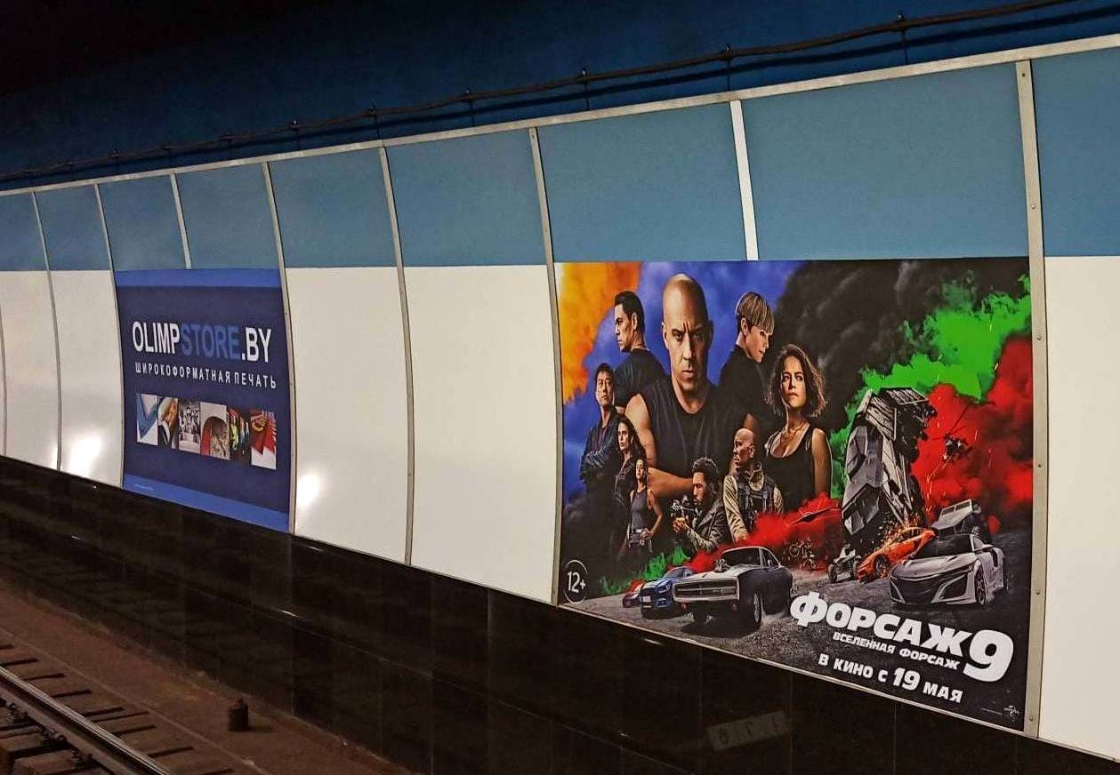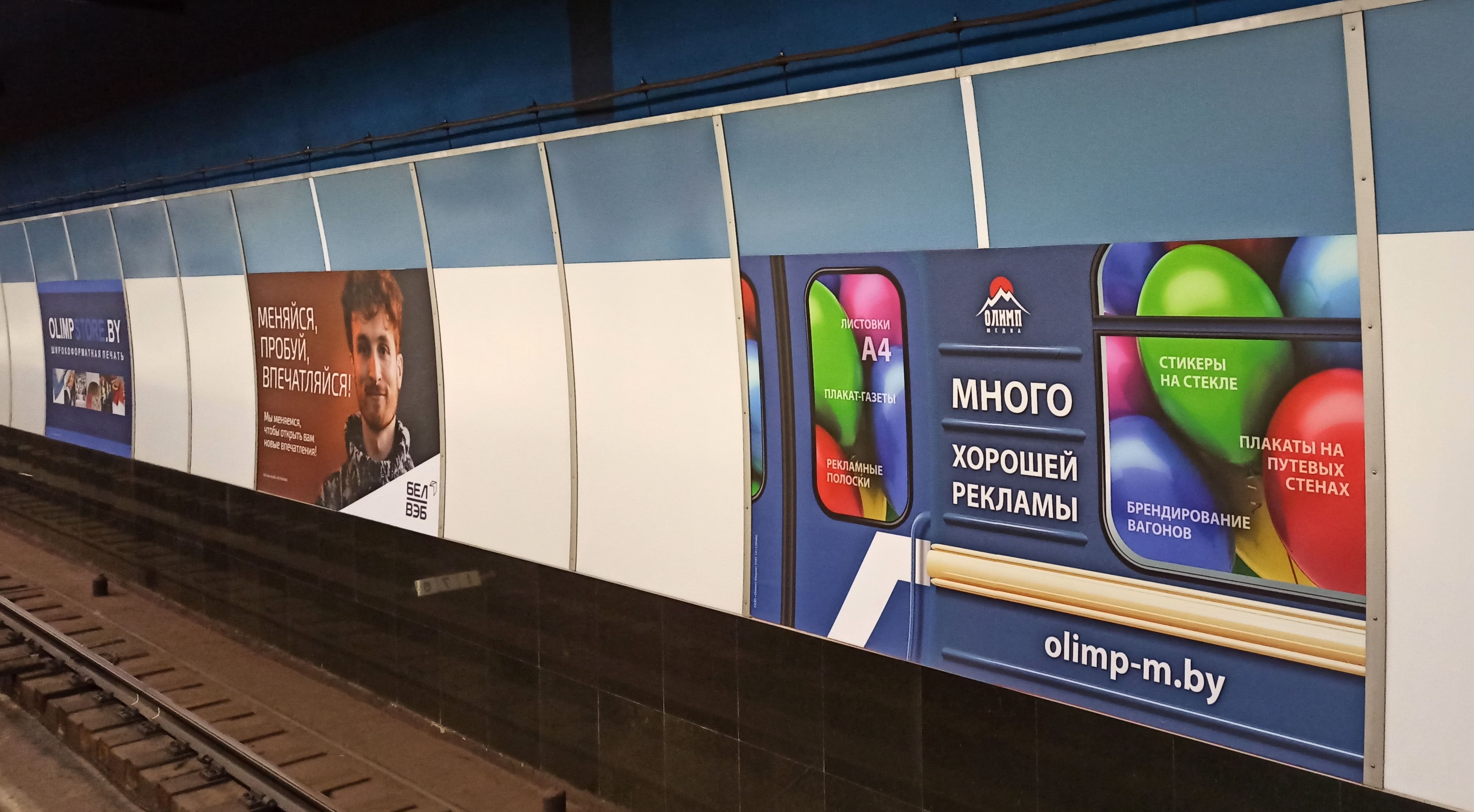 Постеры различных форматов размещаются на путевых стенах станций метрополитена.